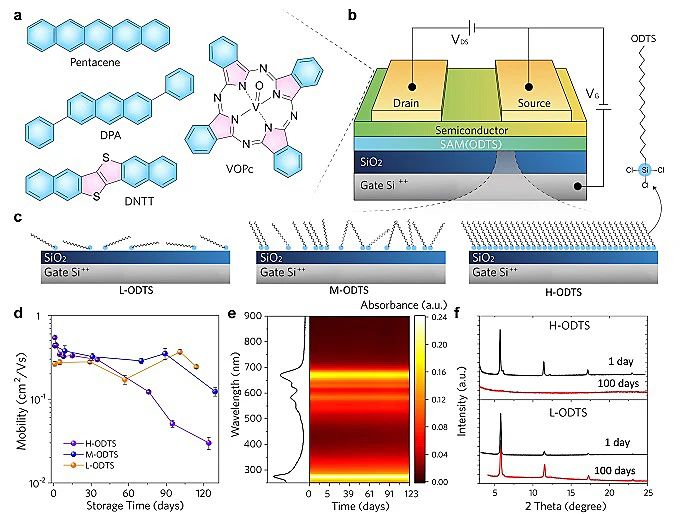 有机场效应晶体管(OFET)作为最重要的有机电子元器件之一,在柔性显示、电子皮肤、可穿戴设备、智慧医疗、射频标签、柔性存储等领域具有广阔的应用前景。经过三十多年的发展,有机场效应晶体管的电学性能(迁移率等参数)与相关加工工艺等方面已取得巨大进步,但该领域仍未实现实用化,稳定性是制约实用化的关键瓶颈(“硬骨头”)问题,也是该领域被质疑是否有应用前景的关键问题。传统观点认为化学结构衰变是半导体材料和器件老化的主要原因,因而人们开发了很多高化学稳定性的有机场效应半导体材料。但基于这些材料构筑的晶体管器件仍然存在稳定性问题,人们逐渐发现半导体材料物理聚集态结构失稳演变是有机晶体管器件老化的主要原因,但发生聚集态结构失稳演变的内在机制(内在驱动力)仍不清晰,进而难以开发出有效提升材料稳定性的方案,直接制约了有机场效应半导体材料与器件的实用化进程。