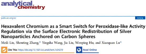 相关工作以“Hexavalent Chromium as a Smart Switch for Peroxidase-like Activity Regulation via the Surface Electronic Redistribution of Silver Nanoparticles Anchored on Carbon Spheres”为题发表在Analytical Chemistry上。