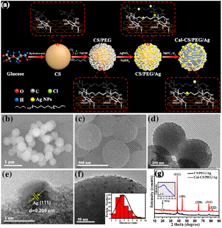 要点1. 以聚乙二醇(PEG)为桥梁,通过原位还原和高温煅烧将Ag NPs有效地固定在碳球(CS)上(Cal-CS/PEG/Ag)。