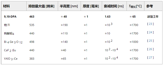 X射线检测器已被广泛研究,并在工业和医疗应用,包括射线照相术,计算机断层扫描,科学研究,X射线是由威廉·伦琴在19世纪90年代发现的。X射线探测器一般可分为直接型和间接型,后者比前者更便宜、更稳定。闪烁体可以将辐射(如高能X射线)转换为低能可见光,在间接X射线成像、计算机断层扫描等领域发挥着决定性作用。一系列无机闪烁体如NaI:Tl、CsI:Tl和锗酸铋(Bi4Ge3O12)已成功应用于X射线成像,但它们通常使用直拉法在超高温≈1700°C下生长。此外,由于这些材料在环境条件下的吸湿性和快速降解性,需要精细的包装过程。因此,必须寻找具有低生长温度、低成本、高灵敏度以及高化学和环境稳定性的新型闪烁体。低剂量、高分辨率X射线成像对于医学诊断和材料/设备分析至关重要。同时有机半导体作为有机电子产品的基石受到了极大的关注,但没有特别强调辐射检测,因为它们由具有低吸收系数的轻元素组成,并且一直被认为不适合该目标。