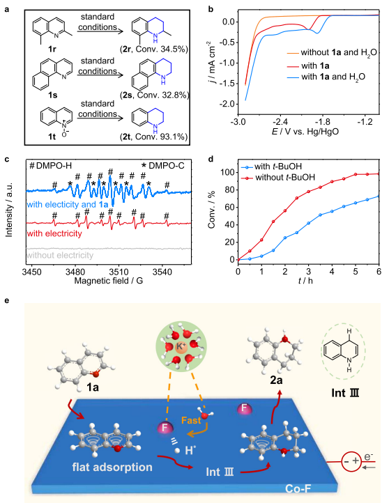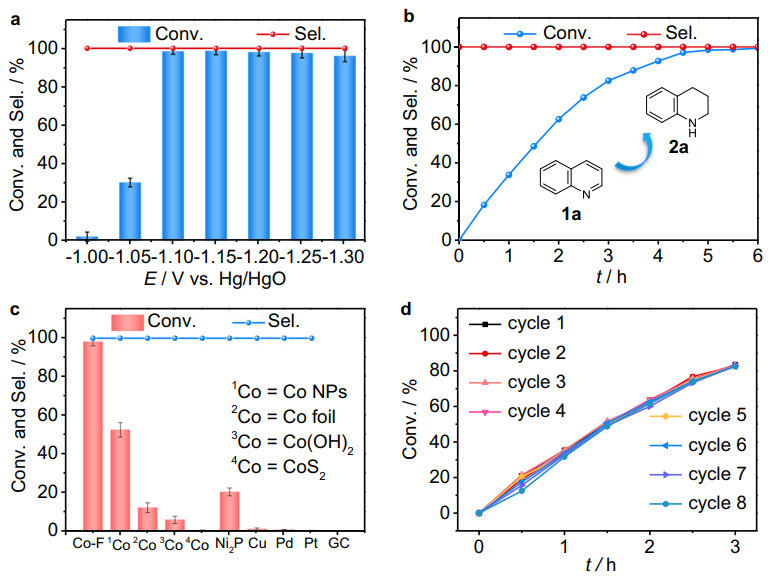 图2. 在Co-F阴极上进行电催化喹啉加氢
