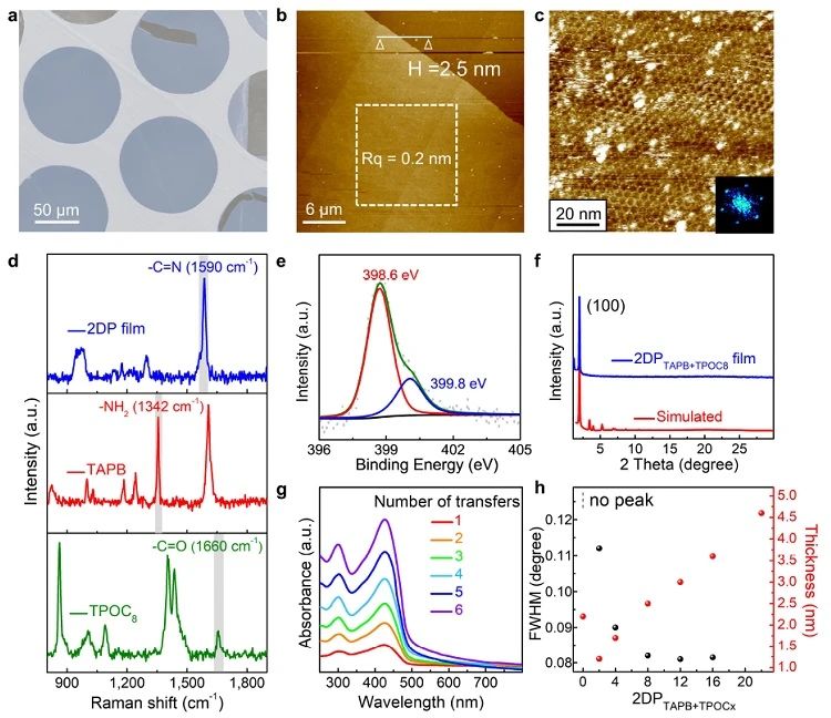 近日,天津大学理学院的胡文平教授和雷圣宾教授团队利用1,3,5-三(四氨基苯基)苯 (TAPB) 与邻位具有不同长度烷氧基链的对苯二甲醛 (TPOCx, x=0, 2, 4, 8, 12, 16, 22) 通过Langmuir-Blodgett (LB) 技术合成了高度结晶的单层二维聚合物薄膜。得益于单层二维聚合物高度有序的结构、易于官能团化以及易于制备范德华异质结等优势,将其作为导电桥连存储器的功能层,存储器件呈现出优异的稳定性、耐久性以及均一性。相关成果发表在化学领域TOP学术期刊Advanced Materials 上。