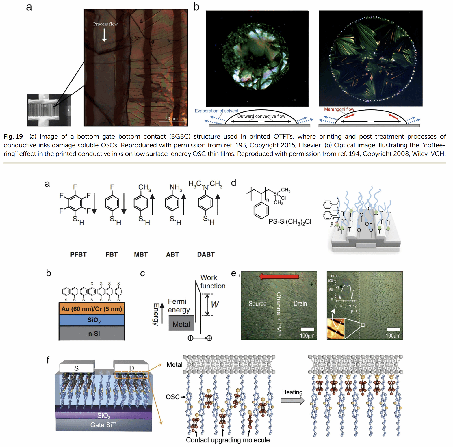1. OSC/电极接触界面:采用自组装单分子层(SAMs)修饰电极以调控功函数,降低电荷注入势垒;通过表面能调制、埋层接触掺杂等方法,改善界面结晶质量与电荷传输效率,如PFBT分子原位迁移形成Ag-S键,可使接触电阻降低16倍。