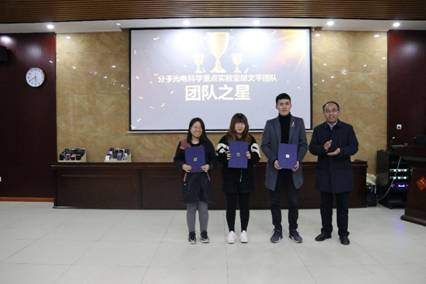 为丰富科研生活,活跃思维头脑,融洽师生关系,倡导健康生活学习方式,课题组不仅举办了丰富的学术交流活动,还开展了趣味运动会、新年联欢晚会等文化体育类活动。这些活动不仅让课题组的每位同学都感受到了大家庭一般的温暖,也锻炼了同学们的团队合作等能力。此外,实验室仪器设备也离不开负责同学的悉心维护,确保了科研学习得以顺利进行。本次颁奖盛典表彰学生包括在团队活动中积极参与的志愿者,悉心维护实验室仪器设备的优秀仪器管理员,以及2020年度做出卓越贡献的团队之星。胡文平教授,雷圣宾教授以及张小涛副研究员为同学们颁发了荣誉证书,此次颁奖典礼圆满结束。