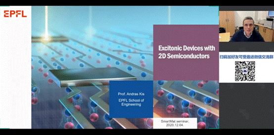 12月4日,受SmartMat编委会、分子光电科学重点实验室、科研云、能源学人邀请,瑞士洛桑联邦理工学院Andras Kis教授通过bilibili(哔哩哔哩),百度,YouTube等直播平台同步直播了题目为“Excitonic Devices with 2D Semiconductors”的学术报告。Kis教授在本次讲座中介绍了如何使用MoS2/WSe2范德华异质结构实现在室温条件下可约束和控制扩散长度、具有开关作用的激子晶体管。本次讲座得到了广泛关注,观众反响热烈。
