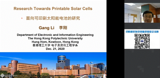2020年12月21日,受 SmartMat编委会、天津市分子光电科学重点实验室、科研云、能源学人邀请,香港理工大学Gang Li教授通过bilibili(哔哩哔哩),百度,YouTube等直播平台同步直播了题目为“Research Towards Printable Solar Cells”的学术报告。Li教授在本次讲座中介绍了有机聚合物光伏电池的研究历程,从理解异质结有机聚合物光伏电池的形貌到聚合物材料的发展,再到各种界面工程方法对有机聚合物太阳能电池技术的发展的推动作用进行了详细讲解。本次讲座得到了广泛关注,观众反响热烈。