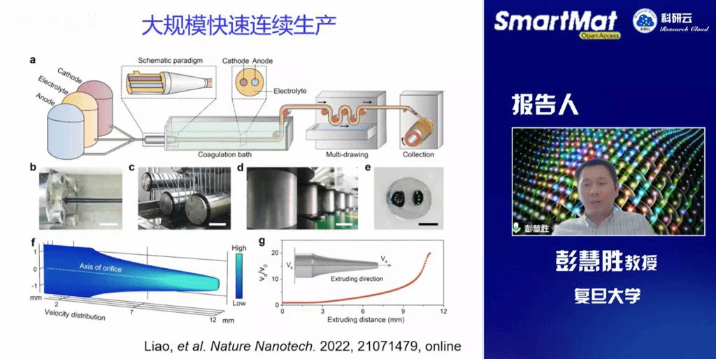 2022年4月19日,受天津大学胡文平教授及香港城市大学张华教授邀请,复旦大学彭慧胜教授通过线上平台向师生做了题为“全柔性纤维电池”的学术报告。