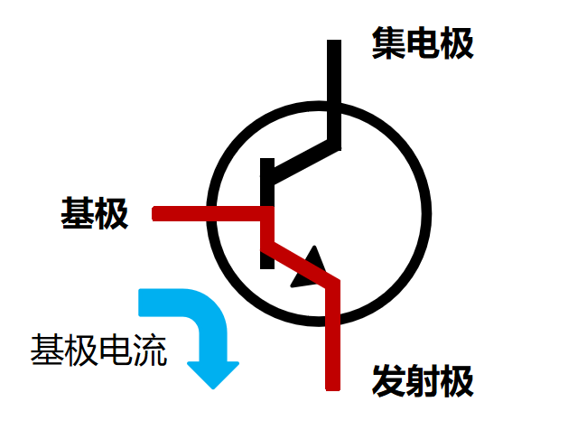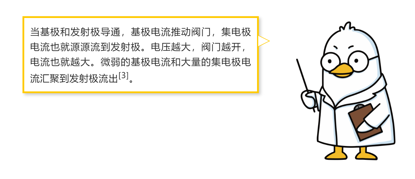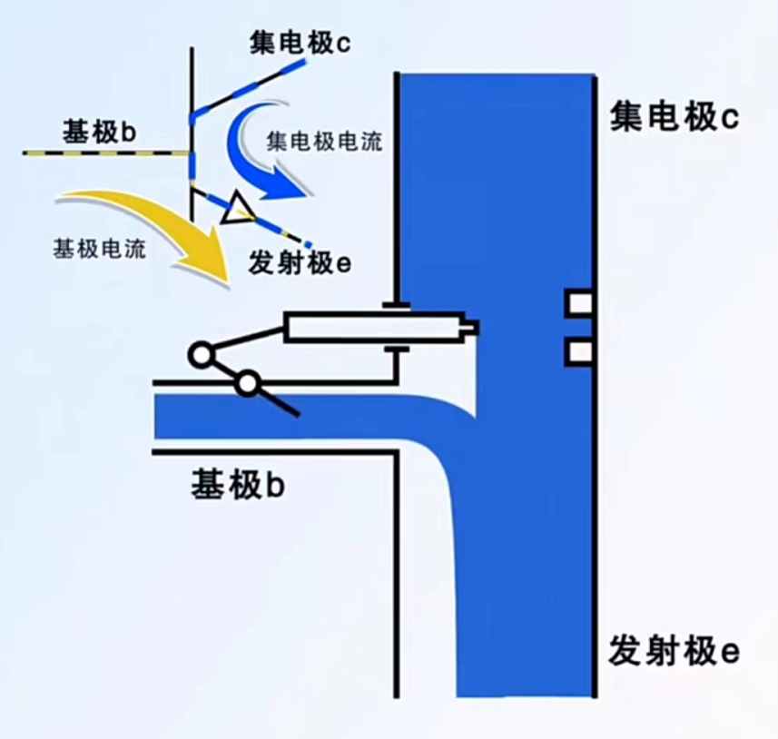 基极电流和集电极电流汇聚到发射极流出