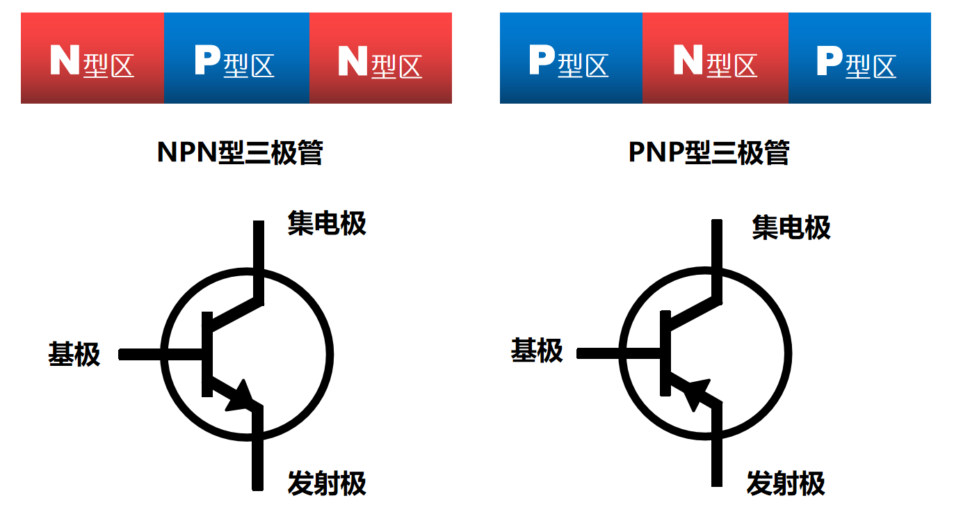 NPN型和PNP型三极管示意图和电路符号