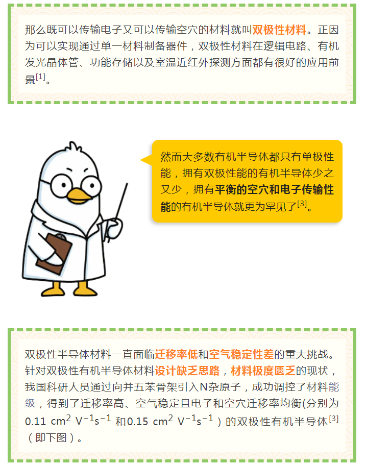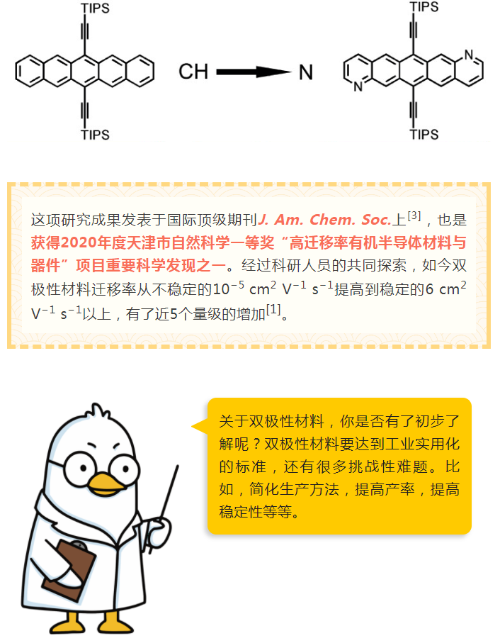 [3] Yiyang Liu,†Chengli Song,† Weijing Zeng, Kaige Zhou, Zifa Shi, Chongbo Ma, Feng Yang, Haoli Zhang,* and Xiong Gong, High and Balanced Hole and Electron Mobilities from Ambipolar Thin-Film Transistors Based on Nitrogen-Containing Oligoacences, J.Am.Chem.Soc. 2010, 132, 16349–16351.