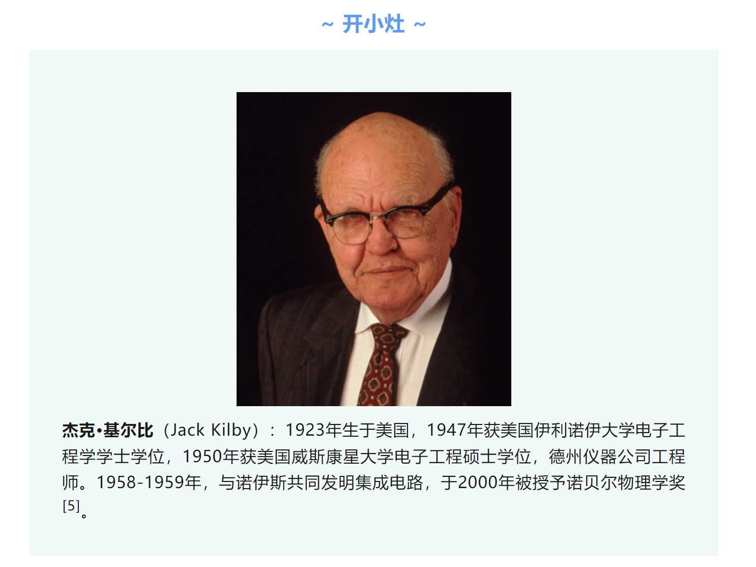 [5] 杰克·基尔比[EB/OL]. 科普中国·科学百科. [2023.08.24]. https://baike.baidu.com/item/%E6%9D%B0%E5%85%8B%C2%B7%E5%9F%BA%E5%B0%94%E6%AF%94/10917672?fr=ge_ala