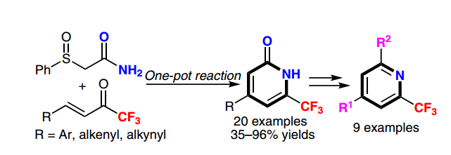 [3] Ning Lva, Yi-Qiang Tiana, Fa-Guang Zhang*, Jun-An Ma*.One-Pot Sequential Multistep Transformation of α,β-Unsaturated Trifluoromethyl Ketones: Facile Synthesis of Trifluoromethylated 2-Pyridones[J]. Synlett, 2019, 30(05): 605-609. DOI: 10.1055/s-0037-1612077