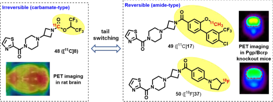 [6] Zhen Chen, Wakana Mori,Xiaoyun Deng, Ran Cheng, Jun-An Ma, Ming-Rong Zhang* and Steven H. Liang*.Design, Synthesis, and Evaluation of Reversible and Irreversible Monoacylglycerol Lipase Positron Emission Tomography (PET) Tracers Using a “Tail Switching” Strategy on a Piperazinyl Azetidine Skeleton[J].2019. J. Med. Chem. DOI: 10.1021/acs.jmedchem.8b01778