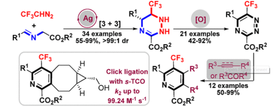 [7] Zhen Chen, Nan Ren, Xiaoxiao Ma, Jing Nie, Fa-Guang Zhang*, and Jun-An Ma*. Silver-Catalyzed [3 + 3] Dipolar Cycloaddition of Trifluorodiazoethane and Glycine Imines: Access to Highly Functionalized Trifluoromethyl-Substituted Triazines and Pyridines[J]. ACS Catal., 2019, 9, pp 4600–4608. DOI: 10.1021/acscatal.9b00846