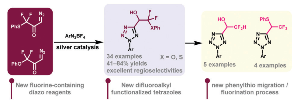 [16] Catalytic regioselective construction of phenylthio- and phenoxyldifluoroalkyl tetrazoles from difluorodiazoketones. Hong-Song Shi, Shuo-Han Li, Fa-Guang Zhang *, and Jun-An Ma. Chem. Commun. DOI: 10.1039/d1cc05890h