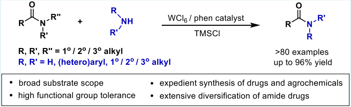 [7] Fang-Fang Feng, Xuan-Yu Liu, Chi Wai Cheung,* and Jun-An Ma*. Tungsten-Catalyzed Transamidation of Tertiary Alkyl Amides. ACS Catal. 2021, 11, 7070−7079. DOI: 10.1021/acscatal.1c01840