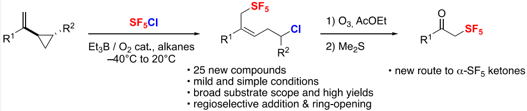 [12] Fang-Fang Feng, Jun-An Ma,* and Dominique Cahard*. Radical 1,5-Chloropentaflfluorosulfanylation of Unactivated Vinylcyclopropanes and Transformation into α SF5 Ketones. J. Org. Chem., 2021. https://doi.org/10.1021/acs.joc.1c01886