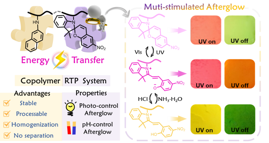 Multi-stimulus Room Temperature Phosphorescent Polymers Sensitive to Lightand Acid cyclically with Energy Transfer.