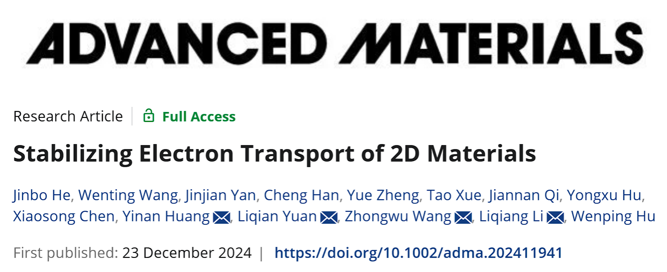 Jinbo He, Wenting Wang, Jinjian Yan, Cheng Han, Yue Zheng, Tao Xue, Jiannan Qi, Yongxu Hu, Xiaosong Chen, Yinan Huang,* Liqian Yuan,* Zhongwu Wang,* Liqiang Li,* and Wenping Hu. Stabilizing Electron Transport of 2D Materials. Adv. Mater. 2025, 37, 2411941.