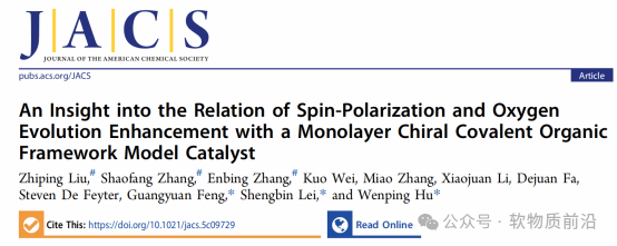 鉴于此,近日,天津大学理学院化学系、有机集成电路教育部重点实验室、天津市分子光电科学重点实验室胡文平、雷圣宾、冯光原团队报告了通过手性诱导自旋选择性(CISS)效应操纵电子自旋态为增强OER的活性和选择性提供了一种新策略。该工作利用配体交换策略,构建了一种具有可调自旋极化(P ≈ 49–72%)的单层手性共价有机框架(mc-COF)模型催化体系,从而实现了将 CISS 效应与其他影响因素在 OER 性能中的作用解耦。研究了自旋极化强度与手性增强OER性能之间的定量关系。此外,原位测量揭示了在不同施加电位下中间体的形成和转化,并阐明了手性诱导的中间体自旋排列对氧析出反应(OER)机制的影响。相关研究以“An Insight into the Relation of Spin-Polarization and Oxygen Evolution Enhancement with a Monolayer Chiral Covalent Organic Framework Model Catalyst”为题发表在《J. Am. Chem. Soc.》上,第一作者为刘治萍、张少芳、张恩冰。