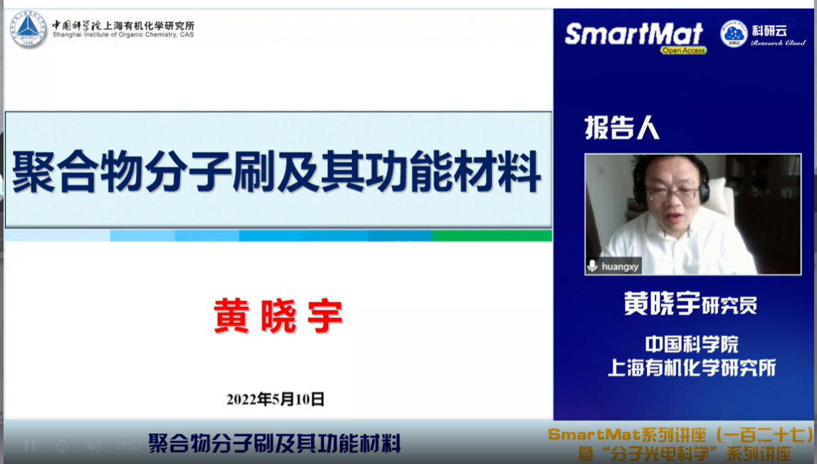 2022年5月10日,受天津大学胡文平教授及香港城市大学张华教授邀请,中国科学院上海有机化学研究所黄晓宇研究员通过bilibili(哔哩哔哩)、百度、YouTube等直播平台同步分别直播了题目为“聚合物分子刷及其功能材料”的学术报告。
