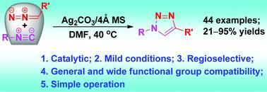 [11] Shuai Wang, Li-Jun Yang, Jun-Liang Zeng, Yan Zheng, Jun-An Ma*. Silver-catalyzed [3+2] cycloaddition of isocyanides with diazo compounds: new regioselective access to 1,4-disubstituted-1,2,3-triazoles[J]. Organic Chemistry Frontiers, 2015, 2(11): 1468-1474. DOI: 10.1039/c5qo00219b